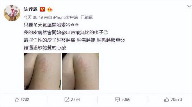 前阵子陈乔恩接受了盲肠炎手术,还晒图向大家报平安。